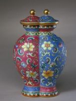 圖片名稱: 胭脂紅、藍地軋道琺瑯彩折枝花紋合歡瓶