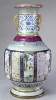 從燒造工藝上看,青花與仿官釉、仿汝釉、仿哥釉、窯變釉、粉青釉、霽藍(lán)釉等均屬高溫釉、彩,需先焙燒。而粉彩、琺瑯彩、金彩及松石綠釉等均屬低溫釉彩,需后焙燒。如此復(fù)雜的工藝只有在全面掌握各種釉、彩性能的情況下才能順利完成。
