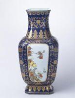 圖片名稱: 霽藍釉描金地開光粉彩花鳥紋方瓶