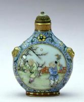 圖片名稱: 粉彩開光嬰戲圖獸耳瓷鼻煙壺