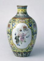 圖片名稱: 黃地琺瑯彩開光嬰戲紋瓶