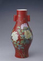 圖片名稱: 珊瑚紅地粉彩牡丹紋貫耳瓶