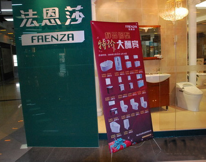 法恩莎衛(wèi)浴專賣店門口的促銷廣告