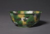 虎皮三彩瓷器為康熙素三彩瓷器中的新穎品種。器表以黃、綠、紫、白等色釉點染成斑塊狀,猶如虎皮斑紋,故俗稱“虎皮釉”或“虎皮三彩”。傳世品中多見康熙虎皮三彩碗、盤等。