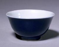 此杯胎薄體輕,造型規(guī)整,釉色均勻潤(rùn)澤。此類霽藍(lán)釉器物多在祭祀時(shí)使用,因此又被稱為祭藍(lán)釉。