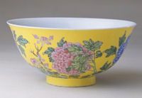 圖片名稱: 黃地琺瑯彩牡丹紋碗