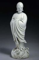 明代德化窯燒造的瓷雕久負(fù)盛名,尤以“何朝宗”款最為著名。此像雕刻精湛細(xì)膩,線條流暢,更兼以潔白如玉的瓷質(zhì),表現(xiàn)出達(dá)摩飄洋過海傳播佛法的高僧形象,是德化窯之佳作。
