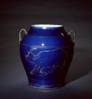 圖片名稱: 祭藍釉金彩牛紋雙系罐