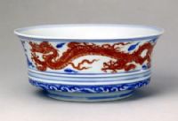 圖片名稱: 青花礬紅彩海水龍紋合碗