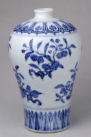 清雍正、乾隆時(shí)官窯曾仿造此梅瓶,造型、釉色較接近原物,唯青花的鐵結(jié)晶斑點(diǎn)過(guò)于均勻、細(xì)潔,與永樂青花自然暈散的風(fēng)格有別。
