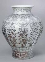 此罐形體高大,釉里紅發(fā)色雖略顯灰暗,但主題紋飾四季花卉的描繪卻細(xì)膩生動(dòng)。紋飾布局繁密,層次清晰,體現(xiàn)了元末明初瓷器粗獷豪放的藝術(shù)特色。