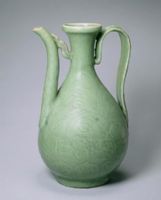此壺為龍泉窯制品,釉色瑩潤,青翠欲滴,造型為玉壺春瓶形,具有元代瓷器的典型特征。