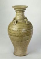 圖片名稱: 青釉劃花蓮瓣紋四系盤口瓶