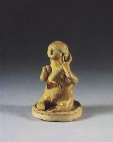 大小尺寸: 此俑高6.8厘米,整體端坐于圓座盤上,座盤厚0.6-1厘米