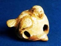 青瓷塤作鳥形,似小憩之姿,背上有一吹孔。最早的塤源于古代先民的狩獵工具——石流星(一種球形飛彈),后來逐漸用陶土燒制而成,以模擬禽鳥鳴聲,作為誘捕的工具,經(jīng)過長(zhǎng)期的演進(jìn)發(fā)展,才成為古代的一種樂器。塤有陶制、石制和骨制等,以陶制最為普通,青瓷鳥塤少見。