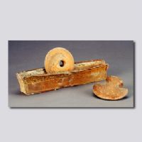 首都博物館藏。由碾槽、碾輪及鉞形鏟組成。外壁施黃綠色釉,施釉不到底。碾輪為扁圓形,中間微鼓,有一圓孔用以安裝木軸,無釉。碾槽為長(zhǎng)方形,中間有凹槽,胎質(zhì)粗硬。