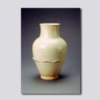 首都博物館藏?谖⒊,粗頸,溜肩,圓腹,腹下斜收,圈足外撇。腹部雕一周蓮瓣紋,蓮紋間有劃花文飾。器物表面有明顯的旋坯痕。通體施白釉。施釉不到底,釉下有白色化妝土,釉色白中帶黃。造型典雅別致,樸素自然。