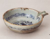 圖片名稱: 景德鎮(zhèn)窯青花花卉紋匜 圖片編號(hào): TIT213 收藏機(jī)構(gòu): 安徽省博物館 大小尺寸: 高:4.3cm,口徑:13.2cm,底徑:8cm 生產(chǎn)時(shí)代: 元代陶瓷 生產(chǎn)窯口或產(chǎn)地: 景德鎮(zhèn)窯 品種: 青花瓷 陶瓷造型: 匜 說 明: 胎質(zhì)細(xì)膩堅(jiān)實(shí),底釉色白微青,光潤透亮,青花呈色較濃艷。