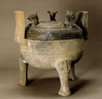 說 明: 泥質灰陶。直口微斂、雙方形豎耳、淺圓腹,圈底。