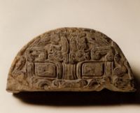 說 明: 泥質(zhì)灰陶。半圓形。制作精制,形象生動。