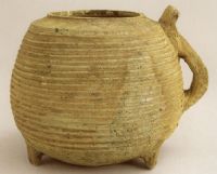 說 明: 泥質(zhì)灰褐硬陶。通體飾密集的弦紋,并有晶亮的自然釉。