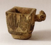 圖片名稱: 彩陶手紋羊頭形把手杯