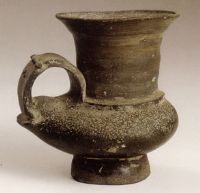 說 明: 灰色印紋硬陶。敞口,寬沿內(nèi)折,高直領(lǐng)。其造型有明顯的地方特征。