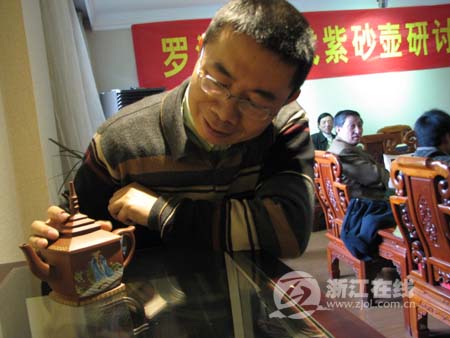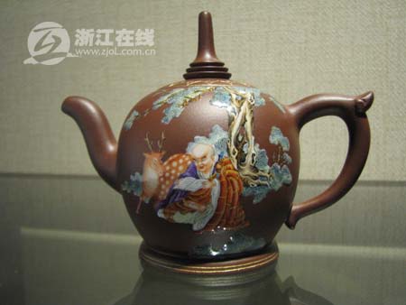 。吃拢玻溉,2把精美絕倫的紫砂琺瑯羅漢壺在西子湖畔唐云藝術(shù)館亮相。這是由原國家文物局局長張文彬?yàn)轭檰,原故宮科技部副主任曹靜樓為藝術(shù)總監(jiān),專家掛帥、團(tuán)隊(duì)打造的紫砂琺瑯精品壺。