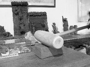 紫砂泥粉和水后,就用這樣的木槌反復(fù)敲擊、碾壓