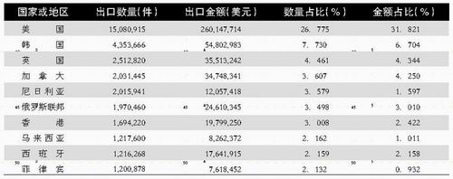2008年我國衛(wèi)浴陶瓷制品出口前10位國家出口數(shù)據(jù)一覽表