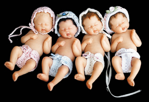 據(jù)英國媒體4月23日報道,加拿大女藝術(shù)家卡米爾·艾倫利以粘土為原料、用牙醫(yī)的器械做工具,雕刻出了一系列四肢五官俱全、神態(tài)逼真的“軟陶寶寶”。這些“軟陶寶寶”不僅形似,而且傳神,最小的才1英寸(約合2.5厘米),最大的也不過4英寸(約合10厘米)。“軟陶寶寶”的制作過程同硬瓷有些類似,要經(jīng)歷多道工序,在烤爐完成以后,再仔細增加各種細節(jié):將細細的馬海毛(安哥拉山羊毛)粘在嬰兒頭上,要用膠水一縷一縷地粘上去,最后涂上顏料,令其活靈活現(xiàn)。艾倫利的故事被廣泛報道。如今她最早制作的“軟陶寶寶”在網(wǎng)上可以賣到3000多英鎊。
