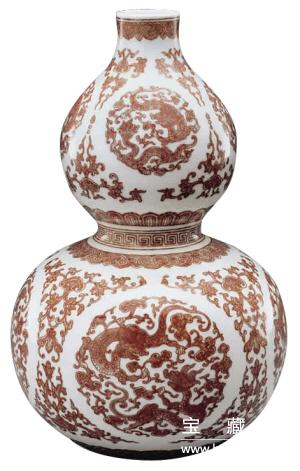清乾隆 釉里紅團(tuán)螭龍紋葫蘆瓶