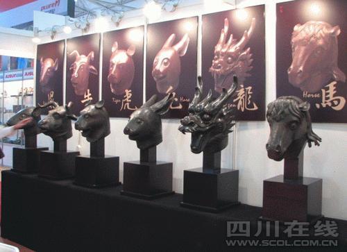 來自四川的青銅時代禮品公司帶來的仿真圓明園十二生肖銅像為青銅鑄造,形象生動夸張、神態(tài)栩栩如生,讓為國寶外流無法親睹真品而耿耿于懷的國人有了親手觸摸寄托感念的機(jī)會,雖然他們是仿造的,但大小外形與真品一致。展會期間每個售價6000元。