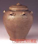 此罐帶蓋,肩部有六耳。據(jù)研究,番禺縣的這座墓可能是南漢中宗劉晟的昭陵。墓早年被盜,現(xiàn)殘存近200件陶瓷器、石刻等遺物。出土的青瓷造型優(yōu)美別致,施釉均勻,釉色晶瑩,是當時青瓷中的精品,應為南漢官窯燒制。