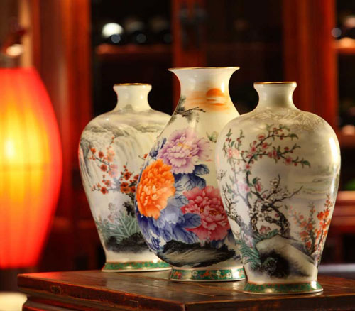 千年瓷都景德鎮(zhèn)獻禮工程:新中國成立60周年紀念《錦繡中華》特制珍藏瓷由一個主瓶和兩個輔瓶組成,作品不論從瓶型上,還是畫面創(chuàng)意上都是僅僅圍繞"祖國60華誕"這一主題展開,以新中國成立60年來,在政治、經(jīng)濟、文化等領(lǐng)域所取得的輝煌成就為主題,結(jié)合妙趣橫生的花卉山水為載體,運用工筆與寫意相結(jié)合的藝術(shù)手法進行創(chuàng)作,畫面主題更是具體到新中國60年來的一個個偉大成就,主瓶上的一個個政治決策,輔瓶上的一個個經(jīng)濟成果,一朵朵文化奇葩,共同構(gòu)筑了當今盛世中國的美好畫卷,歌頌偉大祖國繁榮昌盛,祝福全國各族人民和諧幸福!