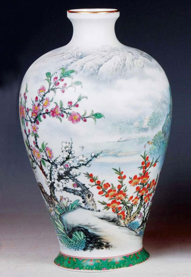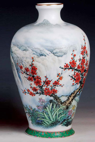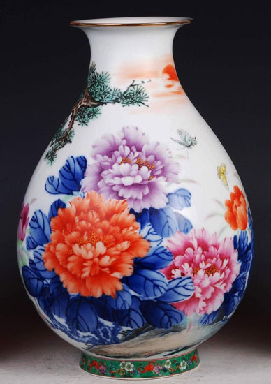 主瓶《祖國花正紅》玉壺春瓶:細長秀美,體現(xiàn)莊重和諧之美