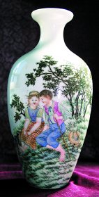 這件琺瑯彩瓷瓶高22厘米,口徑5.5厘米,底徑5厘米,薄胎,小盤口,釉色極其細(xì)膩光潤(rùn),并繪有一對(duì)西洋風(fēng)格的少男少女,顏色自然瑩潤(rùn)。據(jù)鑒定專家介紹,琺瑯彩吸取了景泰藍(lán)制作的方法,在瓷質(zhì)的胎上,用各種琺瑯彩料描繪而成的一種釉上彩瓷,亦稱“瓷胎畫琺瑯”,m瑯彩瓷的特點(diǎn)是瓷質(zhì)細(xì)潤(rùn),彩料凝重,色澤鮮艷明麗,畫工精致,m瑯彩于清代康熙中期燒制成功,至雍正時(shí),得到進(jìn)一步發(fā)展。雍正六年以后采用宮廷自己配制的彩料,色彩更加豐富,但雍正時(shí)期的傳世品多藏于故宮博物院內(nèi)。乾隆時(shí)期的琺瑯彩也很精致,除了白地琺瑯彩之外,還流行色地開光,圖案多繪有山水人物、花鳥紋、西洋婦女等,特別是人物像西洋油畫一樣富有立體感。后由于制作這種琺瑯彩瓷器極度費(fèi)工,因此乾隆以后就銷聲匿跡了。