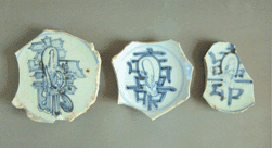 為了便于對(duì)這些帶有“壽”字款的青花瓷片展開(kāi)研究,我首先將它們分類并拍成了照片圖一、圖二、圖三 ,使讀者可以直觀的看到這些瓷片的不同特征和裝飾差別。特別是在圖一