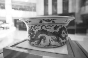 最貴的一件展品是一只明永樂年間的青花纏枝蓮紋洗,從外觀上看這是一只整體為青色的碗,圖案為兩條龍,雖然年代久遠(yuǎn),但龍身上的鱗片依清晰可見,F(xiàn)場工作人員告訴記者,該展品的價值高達1000萬,堪稱鎮(zhèn)展之寶。