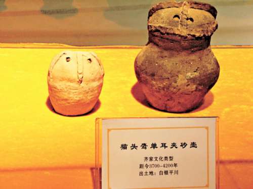 距今三千七百至四千二百年的貓頭鷹單耳夾砂壺