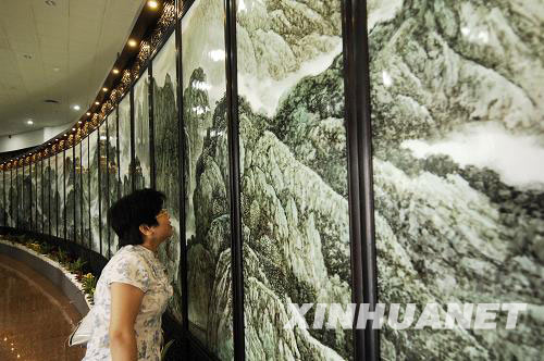 國慶長假期間,為國慶獻禮的巨幅瓷板畫《西江攬勝圖》在南昌江西省博物館展出,吸引了大批觀眾前來欣賞。江西省內(nèi)11位國家級工藝美術(shù)大師和幾十位省級工藝美術(shù)大師共同創(chuàng)作的這件作品由60塊高1.8米、寬0.6米的瓷板畫構(gòu)成,鑲嵌于紅木框架中,寓意新中國60華誕!段鹘瓟垊賵D》展現(xiàn)了當代江西的壯麗河山,融合了自然山水、名勝古跡和經(jīng)濟開發(fā)區(qū)、高速公路、大型企業(yè)等多種景觀。