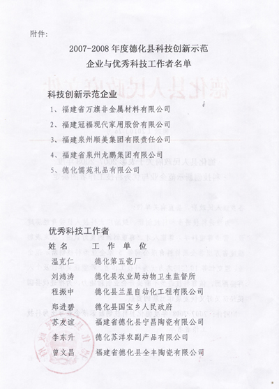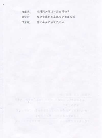 近日,中華陶瓷網(wǎng)、泉州市網(wǎng)興網(wǎng)絡科技有限公司總經(jīng)理——柯維太,被德化縣人民政府評為2007-2008年度德化縣優(yōu)秀科技工作者。