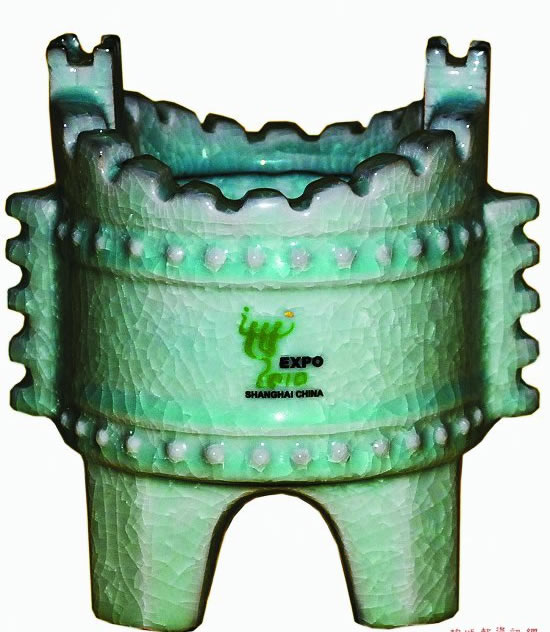 據(jù)上海世博會事務協(xié)調局D、E片區(qū)部消息,河南金堂鈞窯設計、創(chuàng)作的鈞瓷作品《如意簋》、《牛轉乾坤》、《一虎百應》、《福緣》、《中華瓶》、《四海歡歌》、《梅瓶》、《鼓釘洗》、《鼓釘罐》也被上海世博會事務協(xié)調局選為貴賓接待用瓷。