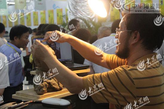 進入陶博會當代國窯展現(xiàn)場,不少市民首先被一陣“叮叮咚咚”的聲音吸引。這是十余位刻瓷大師們正在采用純手工技法,精心刻制瓷盤。另一側,是制陶大師們現(xiàn)場制陶。有的在做花瓶,有的在制瓷盤,還有一位大師在塑造陶像。市民王先生驚奇的稱贊:“這位師傅看人的照片就能塑造陶像,而且如此惟妙惟肖,真神啦!”還有不少陶瓷工藝美術大師當場在花瓶瓷盤上勾勒作畫,引得大家駐足欣賞。“China,中國,瓷器,真的是一項偉大的藝術!”加拿大留學生麥克由衷贊嘆。