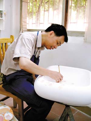 “看上去,花朵似乎 飄浮于表面,其實(shí)摸上去卻平滑光潔。”據(jù)銷售人員介紹,這跟普通花色陶瓷采用的樹脂成型工藝是有明顯區(qū)別的。”這手繪花卉陶瓷是在陶瓷半成品后,由陶藝高 級(jí)技師采用釉料將花紋圖案親手繪在白色釉面上,然后再用進(jìn)口的釉高溫?zé)贫,與一般的陶瓷貼花后的燒制方式有很大區(qū)別,其更耐磨不褪色且光潔度好,無論 經(jīng)過多少年這些花朵都不褪色。