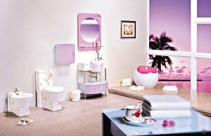 看著白色陶瓷面盆里漂浮著片片“桃花”、朵朵“玫瑰”,通過手繪讓陶瓷充滿生命力而又個(gè)性張揚(yáng),你會(huì)驚訝發(fā)現(xiàn),就連一向 素面朝天的衛(wèi)浴潔具也有了賞心悅目的新面孔!