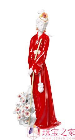 在我國經(jīng)典名著《紅樓夢》中,林黛玉對花最為憐惜。黛玉本著少女純潔的心境,認為美麗的花兒質本潔來還潔去,因此在花落時節(jié),她將落花以錦囊收集,葬于土中,寫了一首唯美動人,自喻身世的《葬花吟》!对峄ㄒ鳌肥羌t樓夢中是最美麗的詩歌之一,表達了黛玉對人格美至純至真的追求。此擺件以“黛玉葬花”為主題,以飽滿潤澤的經(jīng)典紅瓷為材質,刻畫了林妹妹美麗動人的形象,表達了唯美純凈的藝術境界。