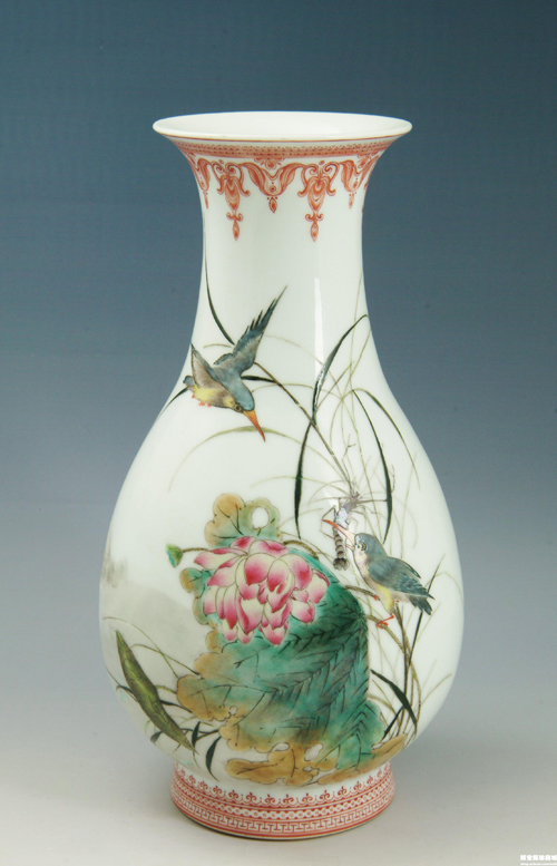 粉彩瓷又叫軟彩瓷,景德鎮(zhèn)窯四大傳統(tǒng)名瓷之一,是以粉彩為主要裝飾手法的瓷器品種,它以秀麗雅致,粉潤柔和見長,擁有悠久的歷史和極高的收藏價值。特別是名家粉彩作品,它們在精湛技藝的烘托下,更顯得嬌而不媚,華貴卻不失典雅,溫婉可人,十分美妙。欣賞鄧肖禹的粉彩瓶飾,我們就會有這樣的感覺,他追尋了粉彩特有的創(chuàng)作風格,在繪制上獨樹一幟,風格獨特,自然清新,完整精細,令人心曠神怡。