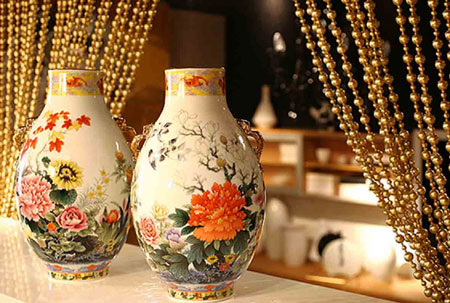 據(jù)介紹,《榮譽(yù)·輝煌》珍藏瓷由“花香五洲瓶”和“情聚中華瓶”組成,胎瓷潔白如玉、絢爛亮麗。設(shè)計(jì)緊扣奧運(yùn)主題:瓶口、瓶底寬約112mm、瓶高約38cm,寓意在第112次會(huì)議上宣布本屆奧運(yùn)會(huì)在北京舉行,1896年希臘奧運(yùn)會(huì)與2008北京奧運(yùn)會(huì)相隔112年,比賽共38大項(xiàng);“金鼠獎(jiǎng)杯瓶型”獲國(guó)家專利及版權(quán)保護(hù),寓意2008生肖“鼠”年。瓶身巧繪歷屆舉辦國(guó)的18種國(guó)花,北京等7個(gè)奧運(yùn)賽區(qū)城市9種市花及五福、壽山湖海、松竹梅等吉祥元素,寓意“花開富貴、五福臨門、福壽延年、平平安安、團(tuán)團(tuán)圓圓、平步青云、財(cái)源廣進(jìn)……”而且,《榮譽(yù)·輝煌》珍藏瓷成品先后4次入窯,經(jīng)72道大小工序。全手工完成揉泥、切泥、拉坯、利坯、接耳朵、吹釉、燒窯、繪畫等過(guò)程。胎瓷通透如玉,胎面如有凝脂,完全超越絕其它普通紀(jì)念瓷。在粉彩、新彩和鎏金等工藝中更是精益求精,集合了色上色、色套色等高難度上色技藝,其難度和精細(xì)度堪稱瓷中一絕。