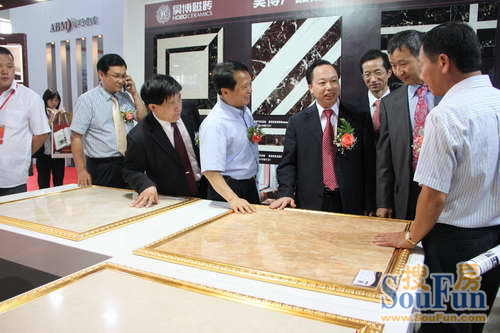 開幕典禮結(jié)束后,中國建筑材料聯(lián)合會專職副會長,中國建筑衛(wèi)生陶瓷協(xié)會會長葉向陽一行領(lǐng)導蒞臨佛山國際會展中心展館參觀考察,分別走訪參觀了昊博瓷磚、瑪緹瓷磚、能強陶瓷、ABM安瑪?shù)榷嗉姨沾烧箯d,對各陶瓷企業(yè)展示的新產(chǎn)品表現(xiàn)出濃厚的興趣,并對承辦方佛山中國陶瓷城發(fā)展有限公司精心組織策劃的此次展會活動給予高度的評價。
